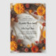 En elegant krans av höstlöv och vilda höstblommor, krysantemum och sammetsblommor, omger den hjärtliga inbjudan till bröllop, brudfester eller andra höstfiranden. Lågkontrastig tyg tillåter en texturerad look med läslig text. Enkel men ändå livfull, denna samling för höstens prakt in i dina inbjudningar och annan post. Naturliga blad och blommor med den elfenbensvita tyget gör dessa perfekta för brudfester, brudens tackkort och mer.