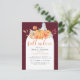 Hösttema bröllopsinbjudan med pumpa blomster höst vattenfärg illustration.