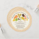 Vacker modern höst rund cirkel inbjudan med fina orange, guld, gröna och bruna höstlöv. Vänd på vår populära cirkelstansade bröllopsdusch inbjudan för att se en matchande baksida för en extra speciell touch.