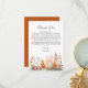 Fyll din bröllopsfest med de varma nyanserna av hösten med hjälp av vårt fängslande hösttema-kort för tack till brudens shower. Med akvarell-målade brända orange och rostfärgade blad förkroppsligar detta kort höstens skönhet och romantik. Perfekt för brudar som arrangerar en höst-, höst-, rustik höst- eller utomhusbröllopsfest, detta kort sätter tonen för en elegant och minnesvärd händelse.