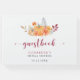 Höst tema bröllopsfest anpassad gästbok med pumpa blomster höst akvarell illustration.