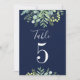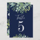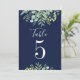 Höst Eukalyptus Blommig Bröllops Bord Nummer Navy Inbjudningar