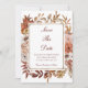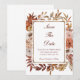 En vacker höst blommig akvarelldesign i persika, vit, rosa, rost och bruna nyanser. Lägg till era namn och bröllopsdatum och plats, alla fält kan redigeras.