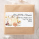 En elegant vit pumpa är omgiven av en bukett av senapsgul och burgunderfärgade vilda blommor i par med dämpad jordnära pampasgräs och torkad bladgrönska. Returadressetiketter för bröllop, baby och bröllopsfestin inbjudningar. Perfekt för sensommar och höstskördefester. Akvarellkonst skapad av internationellt licensierad konstnär och designer, Audrey Jeanne Roberts. Upphovsrätt.