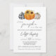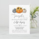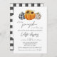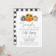 En liten pumpa är på väg! Fira den blivande mamman med en hösttematiserad inbjudan till baby sprinkle. Tre söta pumpor i svart-vit gingham och leopardmönster lägger till en touch av nyckfullhet och rustik charm till inbjudan. Solrosor pryder den mittersta orange pumpen. Baksidan har ett svart-vit randigt tryck. Alla detaljer kan anpassas. Detta är den perfekta könsneutrala höst baby sprinkle inbjudan.