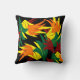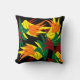 Det här slående dekorativa dekorativ kudde har en abstrakt mönster i löv i hela färg på hösten: orange, gult, rött och grönt. Utformningen upprepas på baksidan.