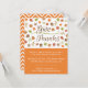 Inbjudan dina nära vänner och kompisar om du vill träffas thanksgiving middag party med thanksgiving middagsinbjudan. På designen står texten "Ge-tack" med dekorativa löv, akorns och viner i årstidens färg palett av orange, brun och grönt. En schevron zigzag mönster på motsatt sida. Anpassa enkelt med dina party-detaljer.