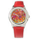 Röd klocka av rostfritt stål med en bild av löven rött, guld, gult, orange och lila under hösten. Se hela Thanksgivingen Wristwatch-samling i avsnittet HELGDAGAR.