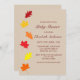 Höst löv babyduschinbjudan. Hösteken och maple-löv mot en ljusbrun bakgrund