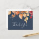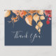 Detta höst löv marinblåa tack som ni postkort är perfekt för ett bröllop i oktober. Den moderna, roliga designen har en fantastisk, handmålad vattenfärg höst löv i färgfulla nyanser av gult, bränd orange och brinnande rött som poppar på en marin blå bakgrund. Anpassa baksidan av vykortet med namnen, returadressen och ett tackmeddelande. Du kan också lämna tackmeddelandemallsavsnittet tomt om du vill att skrivan ska förses med en tankfull personlig på varje kort när de har anlänt. Dessa kort kan användas för en bröllop, möhippa eller vilken speciell händelse som helst.
