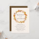 Elegant- och lågprisbröllopsinbjudningar med en andedräkt av varmt höst löv som omger namn med dina uppgifter om bröllop visas nedan. Baksidan av inbjudan har en kontrasterande mörk brun bakgrund färg.