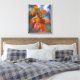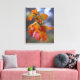 Titta noga på några röda löv och orangar med suddig bakgrund.