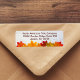 Den här eleganten har en modernt Thanksgiving-returadressetikett med en vacker linje av höst löv på en vit träbakgrund. Anpassa till ditt företag adress i brunt för klassy helgdag i marknadsföring i fallet.