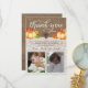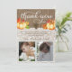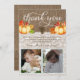 en tacka dig att card för ett dop, en Christening, en dedikation etc. med utrymme för två foto. Underbar för twillingar eller syskon (eller precis 2 foto av din bebis!). Designen presenterar en burlap- och snörelookbakgrund med pumpor och höst löv.