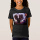 T-shirt med Höst löv Fairy Cat från vildlivet och fantasi-konstnären Michaeline McDonald från en söt liten svart katt med leafy vingar som blåser i vinden och Harvest Måne stigning bakom honom.