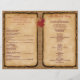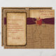 Det här vackra bröllopsprogrammet eller serviceordern på höst färger av bränd orange, rost, guld och brunt har bilder på tre torkade kapsel löv på det med en tryckt vindjo och mörk-burgungiskt vin tryckt band och en FAUX-brännviddsbakgrund med en åldras som brinner pappert utseendet på det som motsvarar den fallinbjudan till bröllop som visas nedan. Om du behöver hjälp med att få informationen att passa eller att anpassa den på rätt sätt kan du skicka e-post till niteowlstudio@gmail.com. Dokumentet skrivs ut som det visas på bildskärmen. Zazzle redigerar INTE för typos eller justering osv. ****NOTERA ATT den högre klass-pappra är ett kort lagrar och inte viker ihop sig (spricker formgivningen längs vecket, även om du förpoängterar det med ett vasst kant).