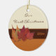 Kom ihåg er speciella dag med denna vackra bruna, orange och elfenbenstorkade höst löv (BILDER) runda keramik "Vår första jul" tillsammans med bröllop behålla för prydnadsföremål som kan anpassas efter namnen av bruden och brudgummen och året. Du kan anpassa texten så att den säger spelar ingen roll du vill ha och använda den som en bröllopsförmån vid ditt fallbröllop, eller som dekorationer för dina turnécenterbitar eller dekorationer. ****Kontrollera att texten är placerad där du vill ha den, eftersom den skrivs ut som den visas på bildskärmen. Zazzle kommer INTE att korrigera någonting. Den matchar också bröllopsinbjudan som visas nedan. Om du vill ha en annan form eller om du behöver hjälp kan du skicka e-post till niteowlstudio@gmail.com.
