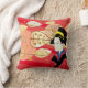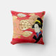 Dekorativ kudde visas med en vacker höst löv hösttryckning med en asiatisk kvinna i traditionell kimonomklänning. Färg av Red multi, tan and black. Anpassa den här kudden eller köp som det är.