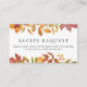 Kortet för begäran om anpassade har en vattenfärgsgarland med falllöv i varma skuggor som rost, gult och oliv grönt. Det är ett tänkvärt sätt för gäster från inbjudan att ett favoritrecept vid ditt falltema, oavsett om det är bröllop, möhippa, babydusch eller familjemöte. Anpassa kortet med ditt eget meddelande och instruktioner för att matcha din ton och ditt tema. Den höstinspirerade utformningen tillför en mysigt säsong-beröring och kompletterar rustik, bondgård eller naturinspirerat firande. Inkludera den med inbjudningar eller dela ut den vid evenemanget för att samla in meningsfulla, personliga receptnycklar.