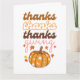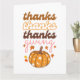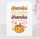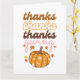 Ett färgat hälsningskort med elegant-typografi "tack, tack thanksgiving" och falla groovitpumpor. Kortet innehåller ett underbart budskap från hälsning längst bak som kan vara personlig.