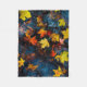 En färgfull höstscen i ett Michiganskog av gult och rött löv flyter i en regnpuddle där himlar speglades i vatten.
