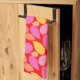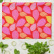 Höst löv Rosa, gult, orange löv på en ljusröd texturerad bakgrund.