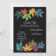 Den här bröllop-kortsdesignen har en slående arrangemang av färgstarkt höst löv, som återges i ett minimalistiskt stil mot en fast svart bakgrund. Löven, i nyanser av grönt, orange, gult, blått och lila, är artificiellt spridda i två kluster - en överst och en längst grund på kortet - som skapar ett naturligt ram för text. Lövens pulserande färg ger kortet en livlig och berömmande känsla, medan den svarta bakgrunden ger det en elegant och modern beröring. Denna utformning är perfekt för ett falltemafritt bröllop som erbjuder en blandning av naturens skönhet med contemporaryns design inslag. Anpassa kortet med namn och information om bröllop. Du kan ladda ned kortet till din mobila enhet eller dator. Kortet skapades med hjälp av ai.