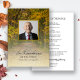 Kom ihåg din kära och fira deras liv med det naturliga Höst löv Lane-programmet för begravningstjänster. Den här anpassningsbarna, den här tidslinjen för att hedra träets minne, innehåller ett digitalt målat naturfoto av en quaint street som är fodrad med högt träd med föränderliga löv. Anpassa den med en bild av den avlidne, personuppgifter och ceremonin för firande i livets gudstjänst. Perfekt för ett evenemang i september, oktober eller november Fall säsong.