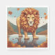 Höst löv Male Lejont, kreativet är en manlig lejon som består helt av höst löv som står på sjö med en vacker reflektion.