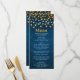Den här roustiska och grymma bröllop-menyn har guld löv på en blå, tryckt bakgrund. Texten kombinerar kursiv och serif typsnitt för ett modernt och snyggt utseende. Detta kommer att bli perfekt för höstens fall.