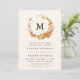 Elegant- och lågprisbröllopsinbjudningar med en andedräkt av varmt höst löv och grenar kring ditt anpassningsbar monogram och dina bröllop-uppgifter visas nedan. Baksidan av inbjudan har en kontrasterande mörk brun bakgrund färg.