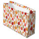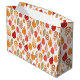 Ett upprepande mönster av höst löv i skuggor av orange, korall och dammig grönt. Löven är alla olika former och storlekar. Den vita bakgrunden kan ändras till spelar ingen roll färg som du vill använda för att anpassa verktyg!