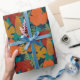 Färgfull vattenfärg höst löv mönster på en marin blå bakgrund.