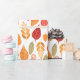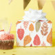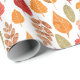 Ett upprepande mönster av höst löv i skuggor av orange, korall och dammig grönt. Löven är alla olika former och storlekar. Den vita bakgrunden kan ändras till spelar ingen roll färg som du vill använda för att anpassa verktyg!