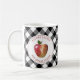 Illustration av en vattenfärgskonst inspirerade äpple. I texten står det att "Höst löv och äpplen, tack" är Gräns svart och vit buffel plaid mönster.