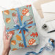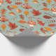 "Höst löv och Svampar Sömlös Wrapping Papper" visar ekorrar som samlar kastanjer och svampar bland färgstarka löv och ger dina gåvor från säsong en lekfull och festlig beröring.