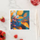 Höst löv och rowan berry Napkins. Abstrakt modern höstkonst i naturolja som målats upp i färg i orange i blått gult.