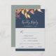 OSA kort för den höst löv marinens blå meny är perfekt för ett bröllop i oktober. Den moderna, roliga designen har en fantastisk, handmålad vattenfärg höst löv i färgfulla nyanser av gult, bränd orange och brinnande rött som poppar på en marin blå bakgrund. Svarskortet i bröllop frågar gästerna vilken måltid de vill ha på mottagningen.