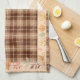 Thanksgiving kökshandduk med en gräns av höst löv på pläterad bakgrund.
