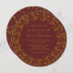 Ett fallbröllop med rundad dekal, inspirerat av jordtonerna på mode på 70-talet tidigt, har en brun röd bakgrund med en bladkrans i guld färg. Alla detaljer är stavade i en vacker blandning av serif- och skripttyp. Om du har någon speciell förfrågan kan du kontakta mig om du vill ha en tjänst för anpassning.