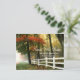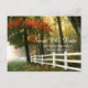 Denna design har ett vackert foto av årstidernas växling. Bladen börjar bli orange och gula, och morgondimman börjar klarna. Anpassa detta postkort med information om ert bröllop. Detta postkort passar bra för höstbröllop.
