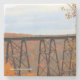 Denna vackra syn kommer till er från Kinzua-bryggstatsparken nära Mt. Jewett Pennsylvania. Det som gång förde tåg över Kinzua-gorge blåstes delvis över av ett F1-tornado 2003. I stället för att helt återuppbygga bron eller slå ner resten av den förstärktes det återstående torn och ett observationsområde med glas golv lades i ställe och öppnades på nytt för allmänheten 2011. Nyligen har ett av de senaste besökscentren avslutat byggandet i parken där besökare kan stanna och få mer information om bron, dess historia och många andra intressanta frågor i området. Äga en biet av konst som gör dubblan påsatt som en drink underlägg eller till och med hänger den på väggen som ett dekorativt foto.
