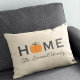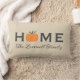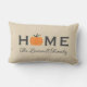 En höstinspirerad lumbalpåse för hemmet med en orange pumpa med gröna bladdetaljer och anpassningsbart familjenamn på en beige bakgrund. Grå hemtext och den klassiska pumpanaccenten skapar en neutral, jordnära höstdesign. All text är fullt redigerbar för att anpassas med ditt familjenamn. En varm säsongsaccent eller genomtänkt höstpresent.