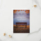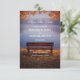 En fridfull och romantisk design med en träbänk vid en lugn sjö, omgiven av varm höstlig lövverk. Den dimmiga bakgrunden och mjuka belysningen skapar en lugn och intim atmosfär. Denna naturinspirerade komposition erbjuder ett tidlöst och elegant sätt att tillkännage ett speciellt ögonblick med en mysig säsongsestetik.