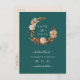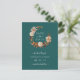 Detta eleganta kort för att spara datumet har en vacker krans av akvarell terrakotta, taupe och bruna blad och blommor på en teal bakgrund med vit text. Baksidan är taupe med brun text som koordinerar med konstverket på framsidan. Detta är en del av Autumn Romance Collection.