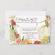 "Höst Vit Pumpa Blommig Burgunder Krans Bröllop RSVP-kort med menyval." Om du inte behöver menyinformation, radera helt enkelt texten i mallfältet så blir det tomt. Elegant handmålad akvarell höstblomma med persika, guld, röda och gula blommor, dämpad grönska och en vit pumpa, målades av internationellt licensierad konstnär och designer, Audrey Jeanne Roberts, copyright.