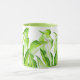 Mugg bär en målning med titeln "Hosta with the Mosta" av mig. Den har den härliga gåvan av Hosta i tidigt vår, som sprider sig med den fruktan som denna säsong ger upphov till genom gröntens skuggor i många (alltså "Mosta"). Den fångar de lekfulla sluttningarna och lata sträckorna av löv, när de komar till livet efter vinterns långa slummer. Vår är över snabbt, men du kan spara dess charm genom att njuta av din dagliga dryck i mugg!