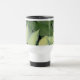 Ett trädgårds- foto av kontrastera Hosta som två slås in runt om en resakaffemugg. En underbar trädgårds- gåva för skuggaträdgårdsmästaren som varar allt år.