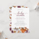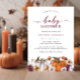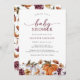Inbjudan till hösten Babydusch. Fira fallfestligheterna med handmålade vattenfärgspumpor, burgundi och terracotta faller blommor, grönt och rost botaniska ämnen och burgundskrivet kalligrafiskt skript. Låt oss hjälpa dig att göra din babydusch extra speciell med denna vackra inbjudan.