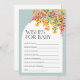En perfekt babydusch för gäster. De här korten är en underbar nyckelfråga för mor. Konstruktionen visar en stor grupp vackra blommor av fallande färgad och accentueras med en vit karusell och en lätt dammig bakgrund.